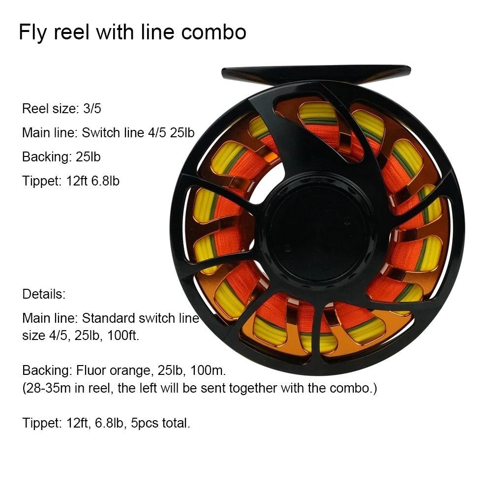 Machined weight balance with O-ring for tippet holding Full Size range from 3/4, 5/7, 7/9, 9/11 to 12/14 Special type II hard anodized for surface protection and corrosion resistance Colors: 1. Full in new champion color; 2. Black frame with orange spool; 3. Dark red body with dark blue components.Quality neoprene reel bag is included 25 Year Warranty, global service centers