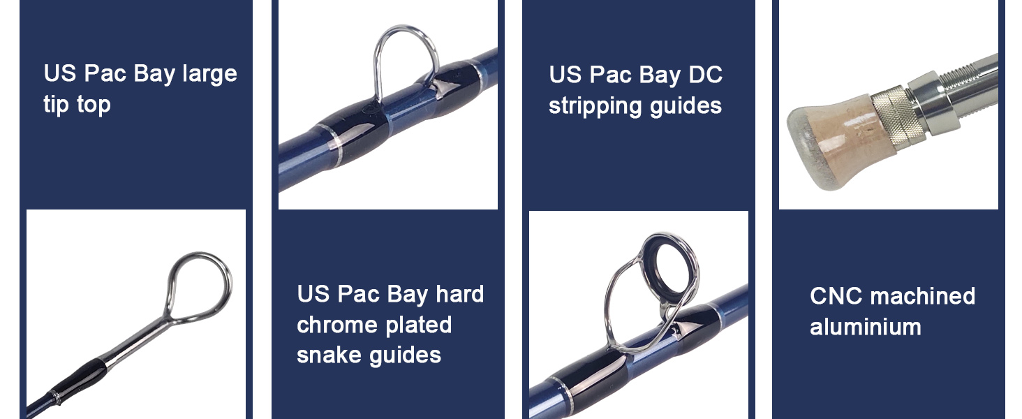 Equipped with premium Pacific Bay components and CNC aluminum reel seat.